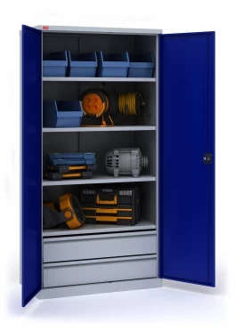 Вы можете скомпоновать свой собственный шкаф для инструментов ИП-1/3 в соответствии с вашими нуждами, выбрав и наиболее удобным образом расположив внутри шкафа необходимые вам комплектующие: перегородки, ящики, полки, перфорированный экран.
