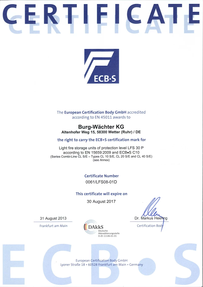 Огневзломостойкий сейф высокого качества, производимый в Германии, который обеспечит вам достойную защиту ценного имущества как от взлома, так и в случае пожара. Сейф Office DOKU 124 E сертифицирован по второму классу взломостойкости по европейским стандартам VdS и ECB-S; также он гарантирует минимум 60 минут полноценной сохранности содержимого при возгорании.